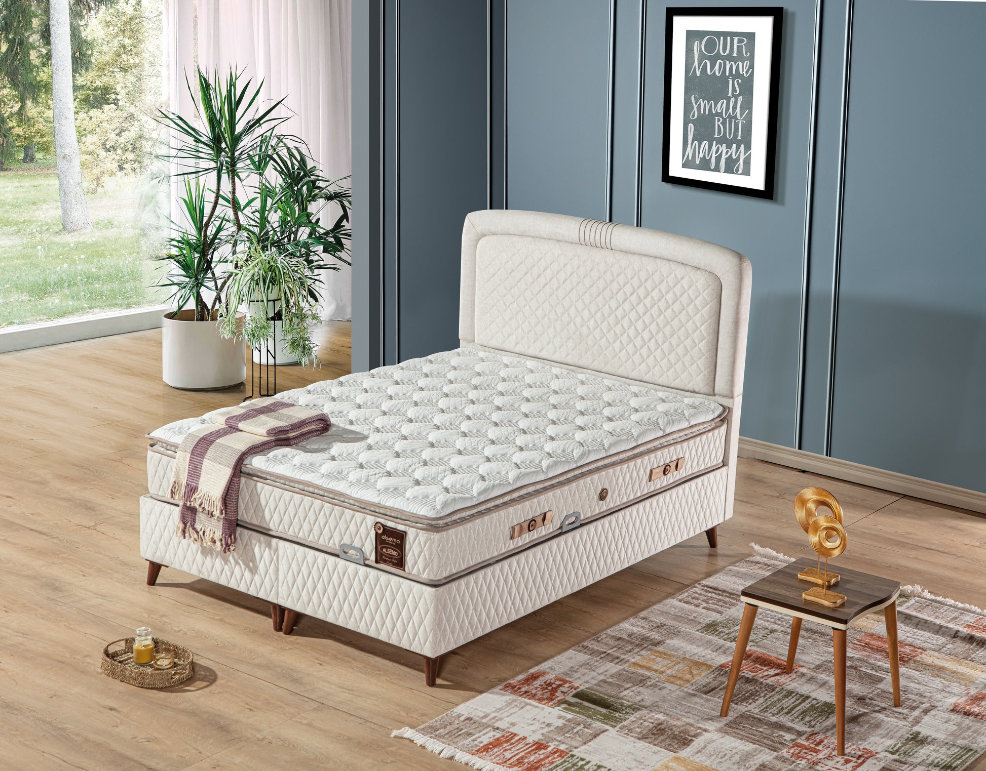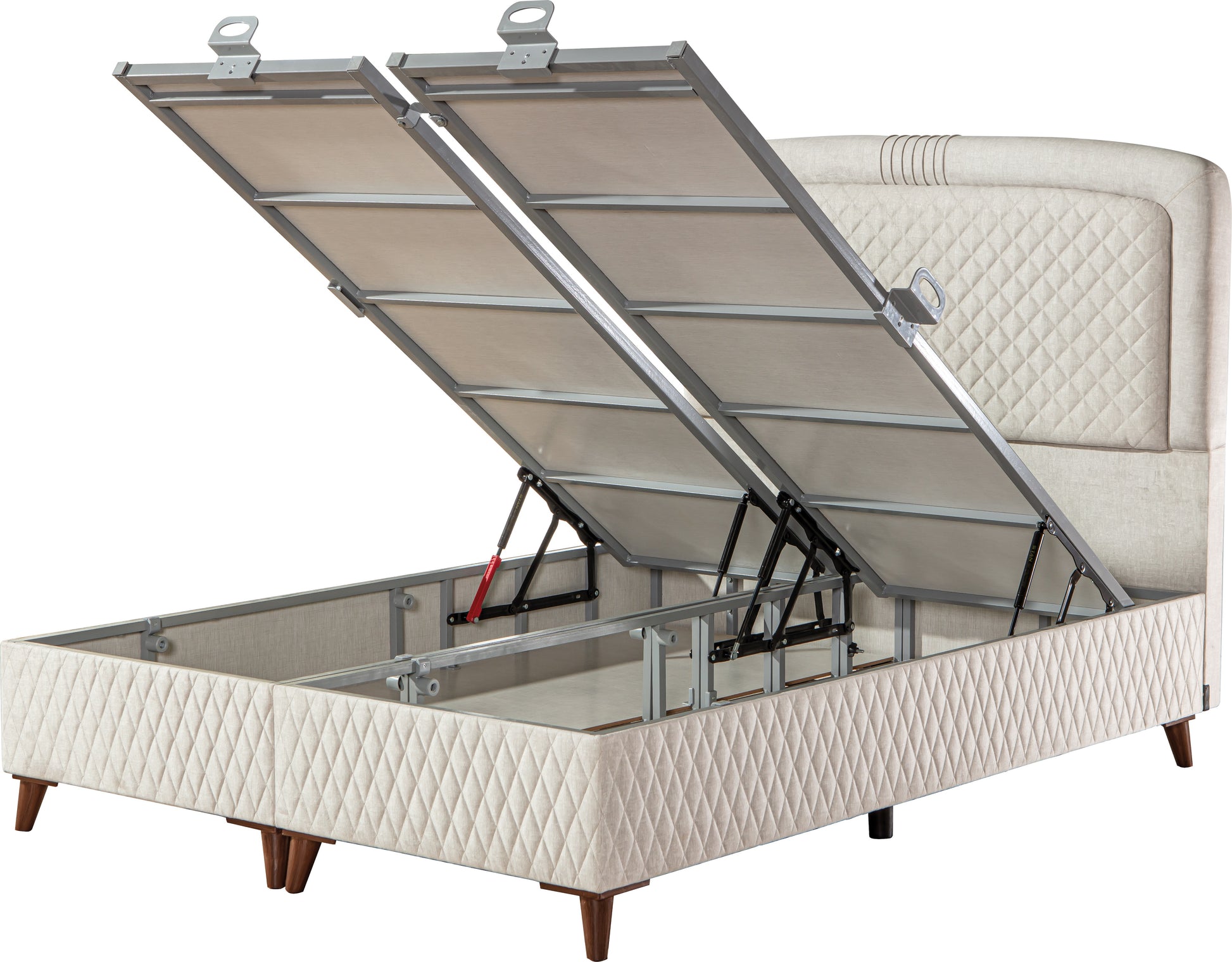 Upholstered Ottoman Bed Frame with mattress.